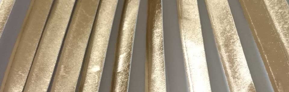 W przypadku aplikacji na większych powierzchniach istotnym elementem staje się grubość folii. Dlatego z myślą o tego typu zastosowaniach oferujemy Państwu możliwość wykonania pokrycia materiału foliami poliamidowymi. Ich trwałość jest zbliżona do folii flex/flock, jednak ich grubość jest znacznie mniejsza, przy niektórych wzorach prawie niewyczuwalna w dotyku. We współpracy z naszymi kontrahentami oferujemy różne warianty folii poliamidowych - począwszy od zwykłych, jednobarwnych, przez folie z przygotowanym wcześniej wzorów (oba warianty w wykończeniu metalizowanym lub matowym), a kończąc na wyszukanych wzorach z częściowym pokryciem materiału i dodatkową powłoką z wielokolorowym wykończeniem.